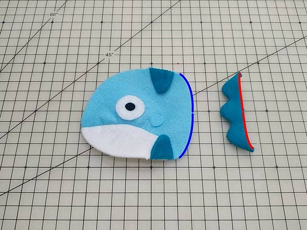 先將上下鰭縫到身體正面固定