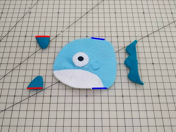 眼睛,眼珠跟側鰭分別貼布縫到身體上